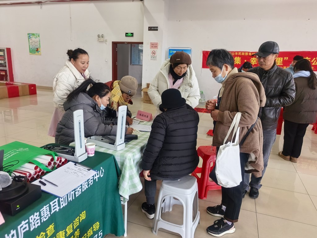 活动现场设置了多个服务点位,包括生活服务区、视力检测区和书法春联区等,满足了居民多样化的需求。生活服务区内,磨刀师傅、理发师和医护人员为居民提供了磨刀、理发、血压血糖测量等贴心服务,让居民们感受到了家一般的温暖。视力检测区则通过专业设备为居民进行细致的筛查,并给出具体建议,引发了居民对健康问题的关注。书法春联区则充满了浓浓的节日氛围,居民们有序排队,领取手写的春联,感受传统文化的魅力。据统计,活动共计服务居民76人,现场秩序井然,居民们对活动给予了高度评价。