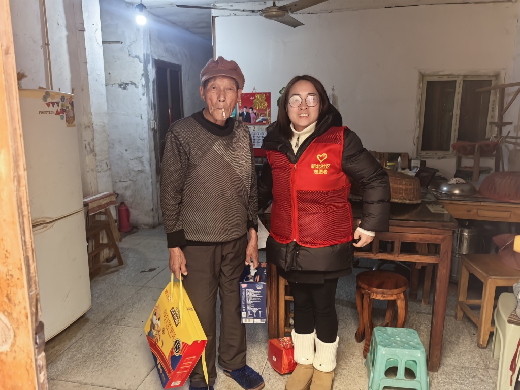 为切实关爱辖区特殊老年群体,传递社区温暖,2026年2月14日,新北社区精心组织开展了‘新北温情送,守护桑榆晚’主题活动。此次活动重点面向辖区五保户、困境老人等特殊人员,通过入户走访、档案建立、需求摸排及精准服务等方式,用实际行动守护‘桑榆晚情’。活动期间,社区积极组织志愿者队伍,分组对辖区内五保户、困难老人开展上门慰问服务,为老人们送去了精心准备的慰问礼品和春联,并耐心陪老人聊天话家常,倾听老人的心声,细致询问老人的身体状况和生活需求。