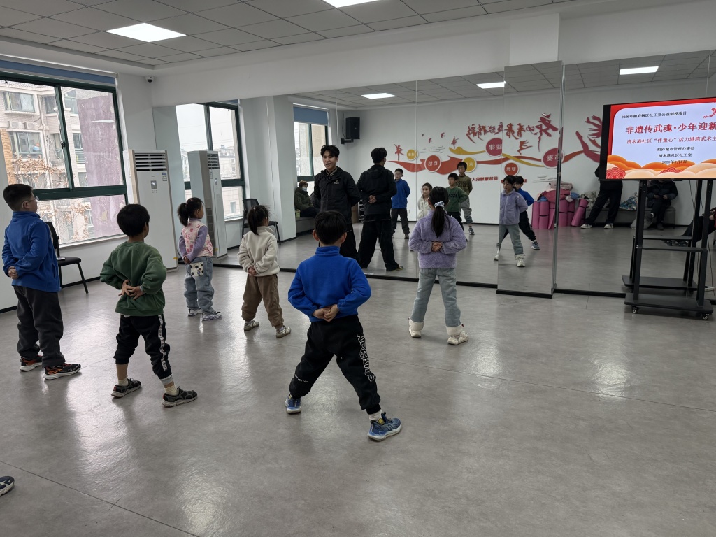为丰富社区青少年寒假文化生活,传承中华优秀非遗文化,培育青少年文化自信。2026 年 2 月 5 日周四下午 13:00,清水港社区特邀专业武术老师开展“非遗传武魂・少年迎新春”武术主题活动,15名6-12岁社区青少年踊跃参与、共赴非遗之约。