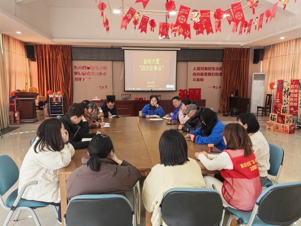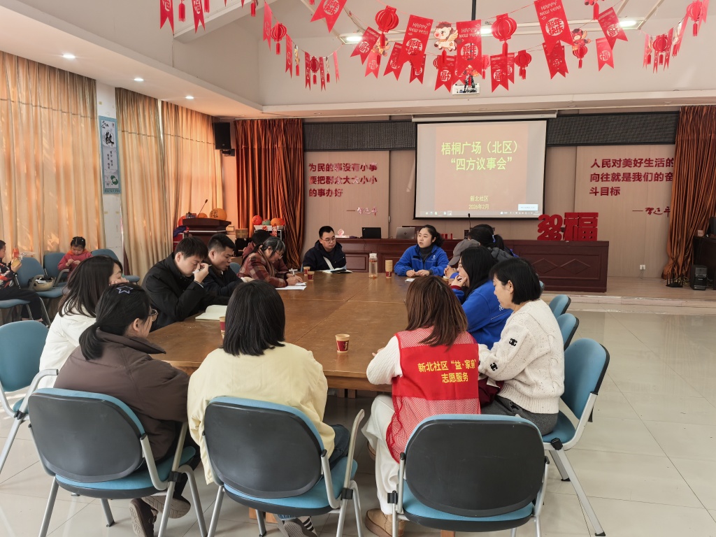 为凝聚基层治理合力,切实解决居民急难愁盼问题,2月28日,新北社区组织召开“四方议事,焕新新北”专题议事会,社区工作人员、居民代表、物业代表及志愿者齐聚一堂,围绕年后重点工作共谋思路、共商举措。此次活动旨在通过议事方式,聚焦新北社区重点难点问题,寻找解决办法,协助社区化解矛盾,提升治理水平。