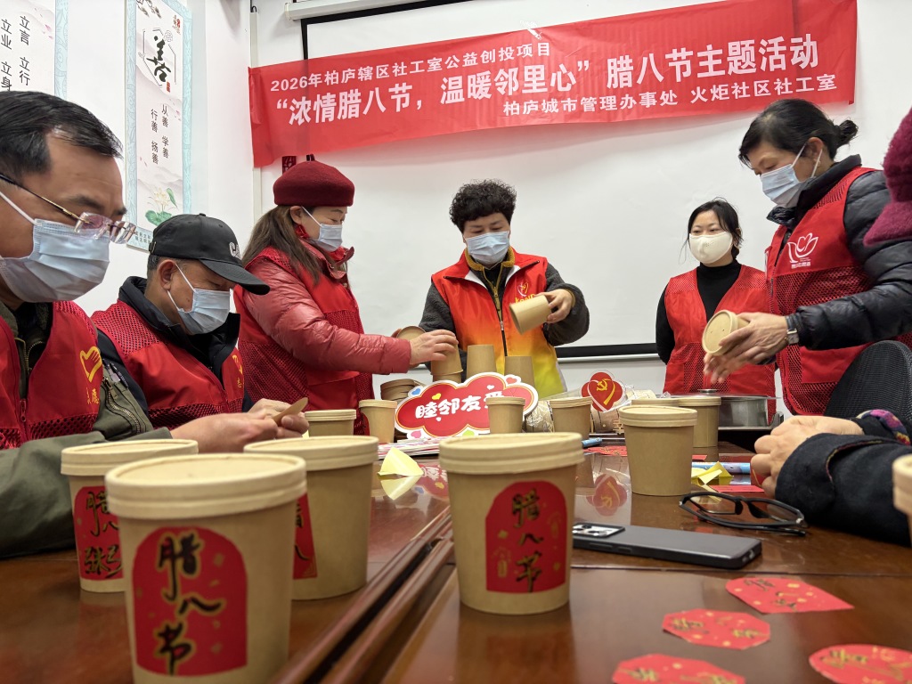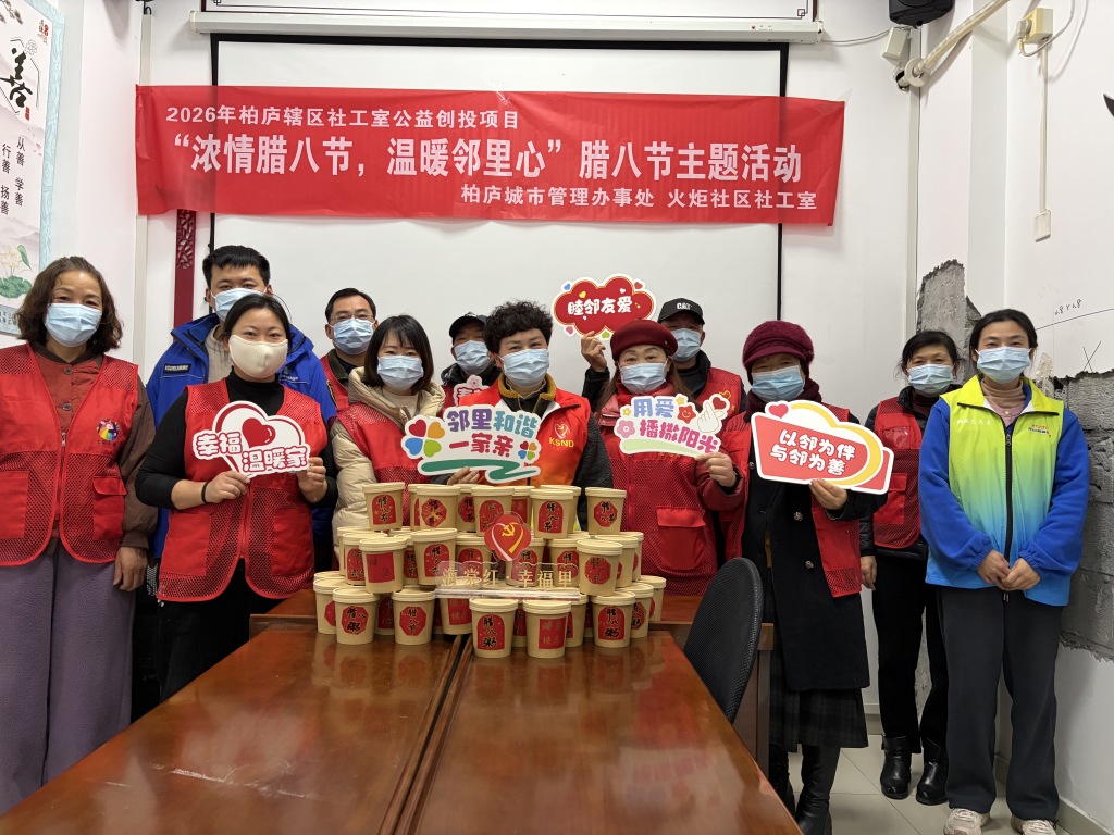 2026年1月26日,火炬社区以传统节日腊八节为契机,组织开展了“浓情腊八节,温暖邻里心”主题活动。活动通过志愿者上门送粥的形式,为辖区内高龄、独居及行动不便的老人送上节日关怀,弘扬敬老文化,营造邻里相亲、社区共融的温暖氛围。