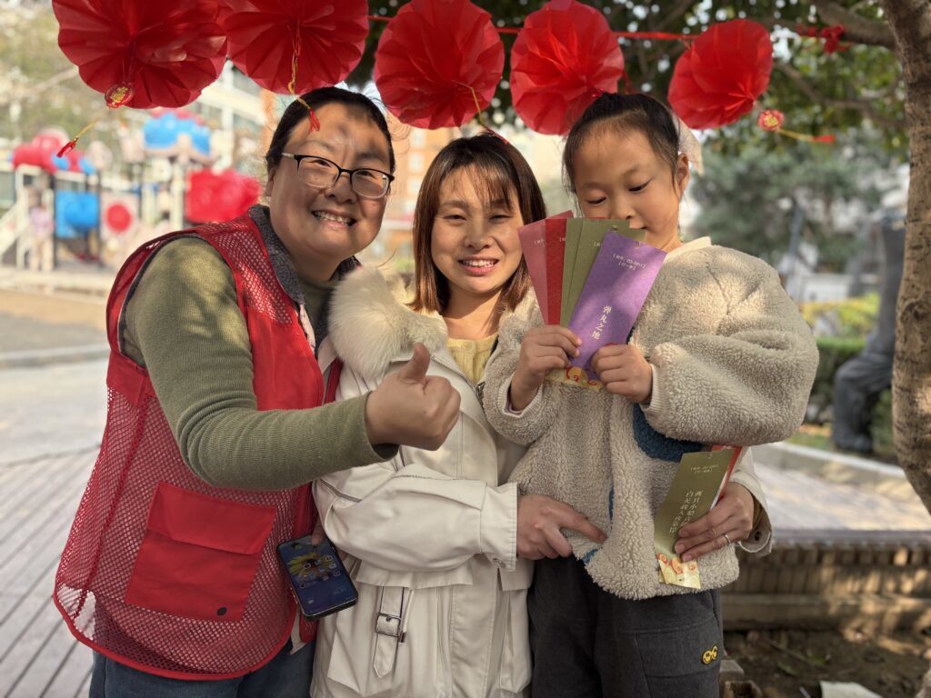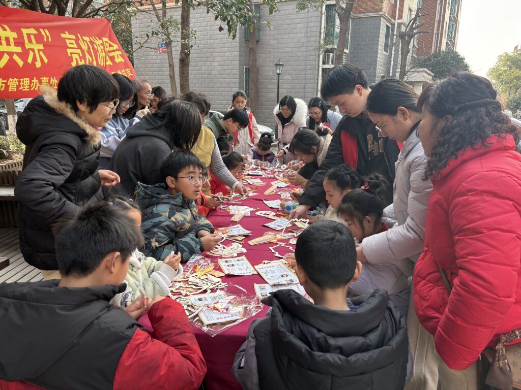 制作小灯笼环节是亲子互动的热门区域,一张张彩纸、一根根竹篾在居民手中变成了形态各异的元宵灯笼。家长与孩子分工协作,裁剪、折叠、粘贴,时而讨论颜色搭配,时而研究造型设计,专注的神情中满是温情。孩子们发挥想象力,在灯笼上画上马年元素、吉祥图案,老年居民则分享着传统灯笼的制作技巧,现场洋溢着传承与创新的氛围。完成的灯笼不仅可以带回家作为节日装饰,还能凭作品兑换积分,看着自己亲手制作的灯笼,居民们脸上都洋溢着成就感,积分成为了手作温情的见证。整场活动中,积分机制始终以隐形方式融入节日氛围,没有生硬的规则宣讲,却让居民在欢乐参与中自然接受。四大环节各具特色,覆盖不同年龄段居民的兴趣点,既传承了元宵传统习俗,又通过积分培育计划激发了居民参与社区活动的内生动力,为后续社区治理与服务开展积累了宝贵的群众基础。