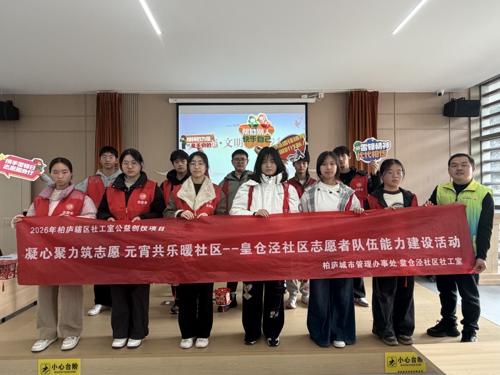 为弘扬雷锋精神、强化志愿者队伍建设,2026年2月28日下午,皇仓泾社区在党群服务中心二楼会议室开展‘凝心聚力筑志愿,元宵共乐暖社区’志愿者队伍能力建设活动。活动汇聚12名社区骨干志愿者与15组亲子家庭,通过理论学习、实践实操、暖心服务等形式,既提升了志愿者的服务能力,又让居民在团圆氛围中感受志愿力量,为社区志愿服务高质量发展注入新动能。