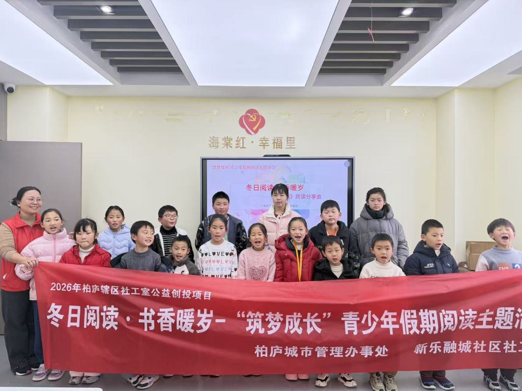 为弘扬中华优秀传统文化,营造社区阅读氛围,助力7-12岁青少年素养提升与阅读能力培养,2026年2月26日,新乐融城社区在四楼梦想教室成功举办“筑梦成长”青少年假期阅读主题活动——“冬日阅读 书香暖岁”。活动以经典共读、趣味分享、互动交流为核心形式,吸引17名青少年及家长参与,2名志愿者提供全程支持,通过沉浸式阅读体验激发青少年阅读兴趣,推动书香社区建设。
