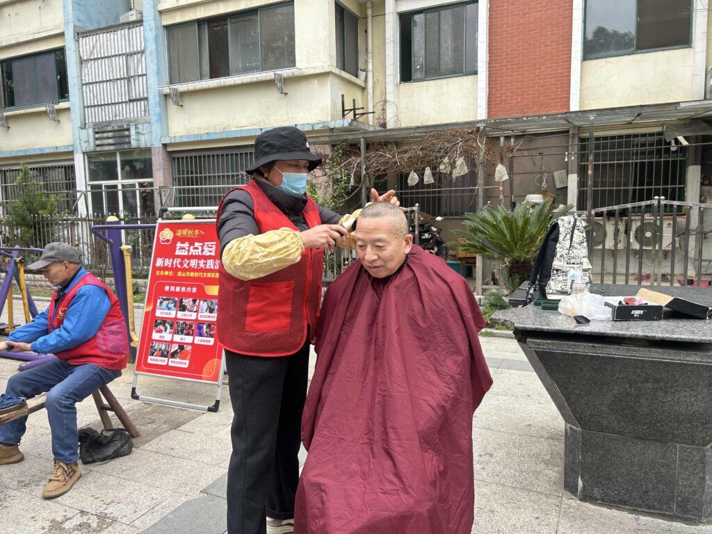义诊摊位前,辖区医疗机构志愿者耐心为居民测血压、血糖,细致解答老年病预防、用药疑问,同步讲解养生知识,温柔叮嘱与专业指导让老人们倍感暖心。免费理发摊位上,志愿者理发师手法娴熟,一边为老人、孩童修剪发型,一边亲切唠家常,剪刀起落间,既有清爽造型,更有邻里温情。