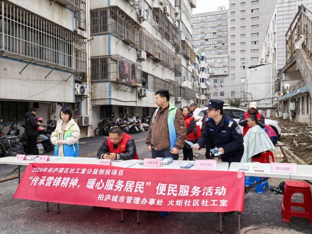 2026年3月4日,火炬社区柏龄坊广场人头攒动,一场以“传承雷锋精神,暖心服务居民”为主题的便民服务活动在此火热开展。活动聚焦居民“急难愁盼”,整合辖区资源,设置免费理发、义务磨刀、健康义诊、家电维修等10余个服务摊位,并同步开展垃圾分类宣传,吸引100余名居民参与,以实际行动诠释雷锋精神的时代内涵,营造互助友爱的社区氛围。