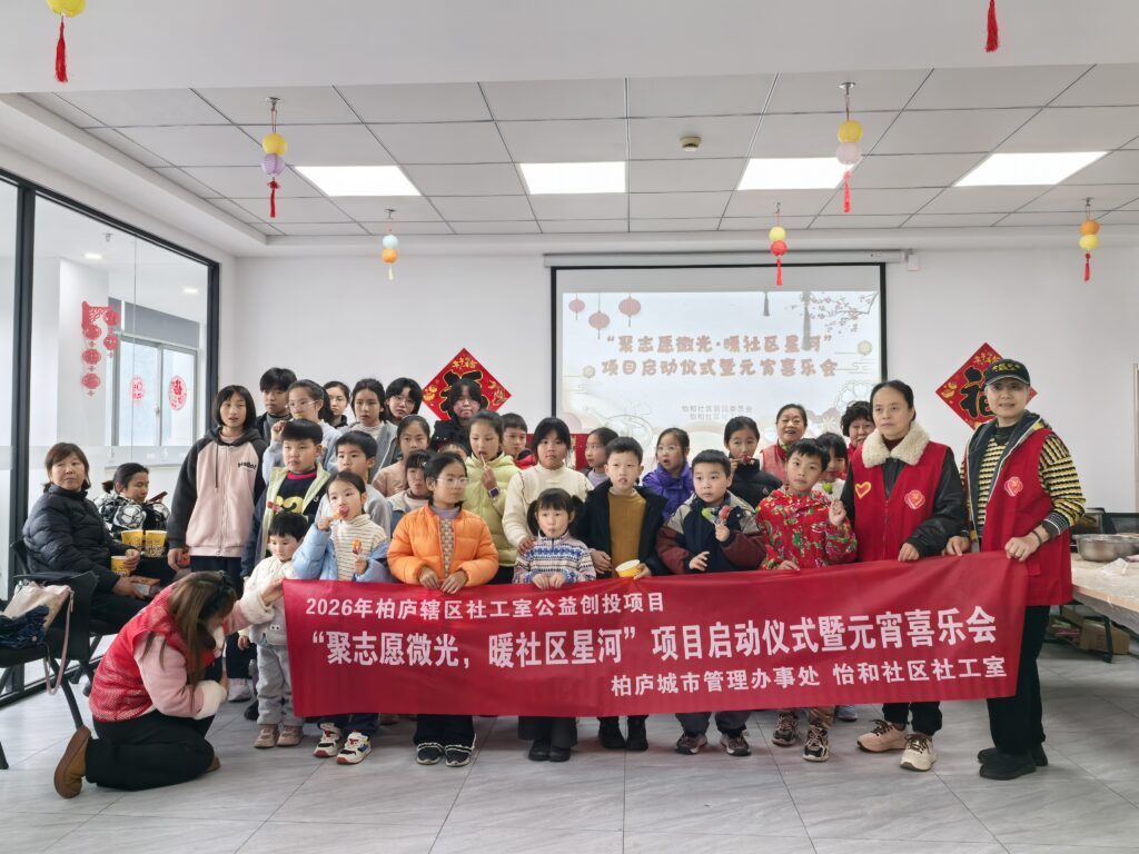 “聚志愿微光,暖社区星河志”愿者项目启动仪式暨元宵喜乐会 yihe 2026-02-27 84 2月27日,怡和社区举行“聚志愿微光,暖社区星河”志愿者项目启动仪式暨元宵喜乐会活动,现场气氛热烈,暖意融融。 简短的启动仪式后,热闹的美食环节拉开帷幕。志愿者们与居民朋友们一起动手搓汤圆,品尝香甜的爆米花和冰糖葫芦,特色汤圆打卡点前排起长队,大家在烟火气中感受邻里温情。一旁的儿童趣味游戏区同样欢声不断,孩子们在套圈、猜谜中尽情嬉戏,点亮了社区星河。 本次活动以传统美食和趣味游戏为载体,拉近了邻里距离,也让志愿服务的温暖深入人心,凝聚起共建美好社区的合力。 本文由 yihe 发布在 柏庐社工站,转载此文请保持文章完整性,并请附上文章来源(柏庐社工站)及本页链接。原文链接:https://bailu.npo365.cn/13860.html/