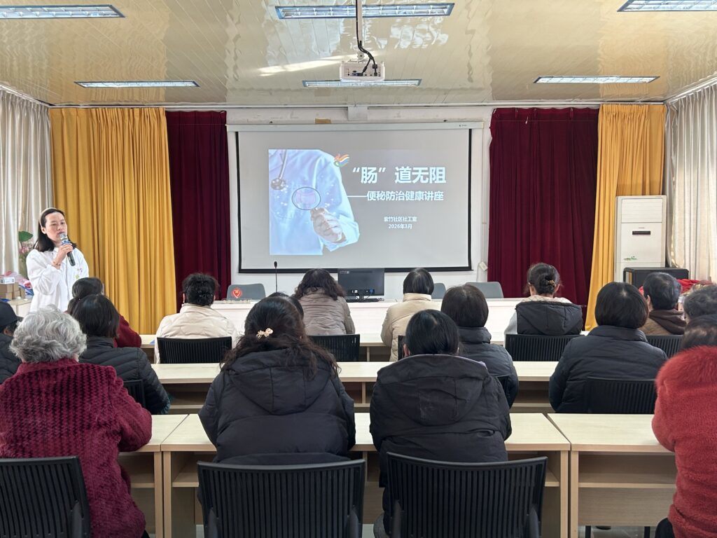 为关爱社区老年人肠道健康,紫竹社区社工室联合百佳惠大药房举办了一场“肠道无阻”主题健康讲座,吸引25位老年居民参与。