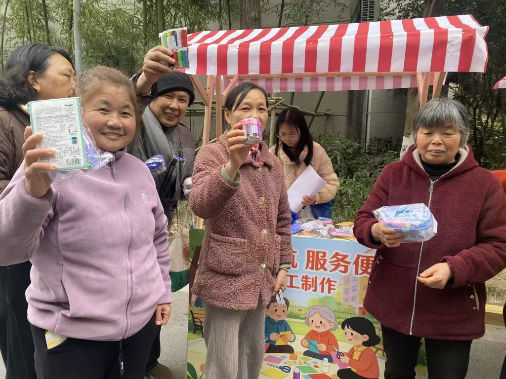 活动现场划分为便民服务、健康服务、手工体验三大区域,秩序井然且互动热烈。便民服务区提供理发、磨刀、擦鞋等服务,解决居民生活小难题;健康服务区免费测量血压、普及养生知识,并为口腔问题居民提供专业解答;手工体验区成为邻里互动核心,居民协作完成手工创作并参与知识竞答,现场氛围温馨融洽。整场活动未出现物资短缺或流程卡顿,有效拉近了社区与居民的距离。