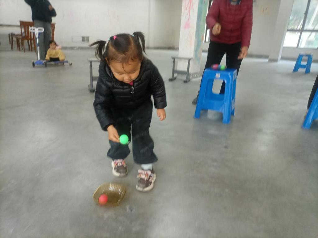 活动在欢快的“开火车”游戏中拉开序幕,孩子们在老师带领下迅速连接成队,随着“火车”行进与“钻山洞”的互动,现场笑声不断,成功打破了初到的拘谨。随后,全体家庭跟随领操员完成了集体热身律动,为接下来的挑战做好了充分准备。在核心环节“同心运球”中,孩子用勺子、家长用筷子协作完成运球接力,无论是基础的运球还是增设障碍的挑战环节,亲子家庭都全情投入,现场“慢一点”、“对齐步子”的叮嘱声、加油声与欢笑声交织,共同体验了配合的乐趣。