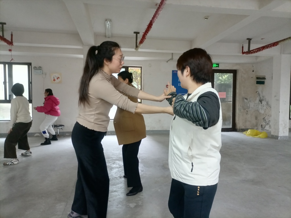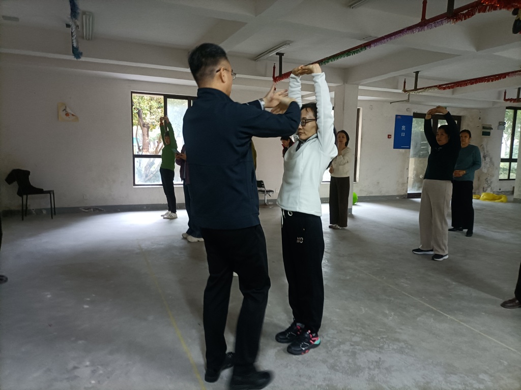 活动当天,专业老师系统讲解了八段锦的养生文化内涵与核心锻炼特点,并带领学员完成全身关节热身。教学环节聚焦前两式——“两手托天理三焦”和“左右开弓似射雕”,老师通过分解动作步骤、示范技术要点、强调呼吸配合,逐一指导学员纠正姿势。学员们学习热情高涨,积极模仿练习,课堂氛围轻松活跃。在老师的耐心指导下,多数学员已能初步掌握动作外形与连贯节奏,并在串联练习中体验到身心调和的愉悦感。活动结束后,学员普遍反馈身体得到舒展,对八段锦“柔和缓慢、身心同调”的特点有了直观认识。