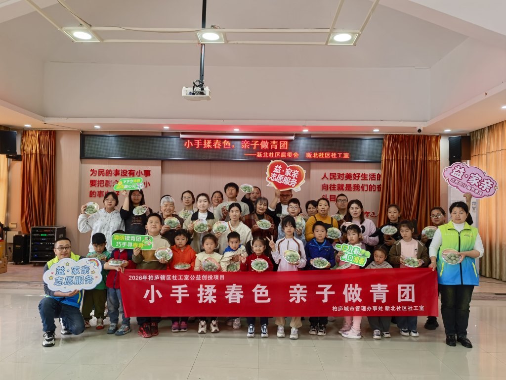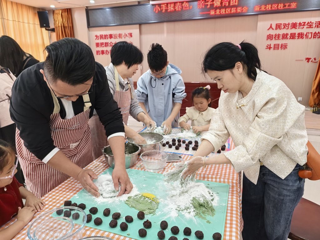 清明将至,艾草飘香。2026年4月4日,新北社区围绕“福满新北幸福感提升计划”,精心策划并开展“小手揉春色,亲子做青团”清明主题手工活动,吸引辖区15组亲子家庭共计30名居民踊跃参与。活动以传承中华传统民俗文化为核心,通过亲子协作制作青团的形式,增进家庭情感交流,营造和睦暖心的社区氛围。