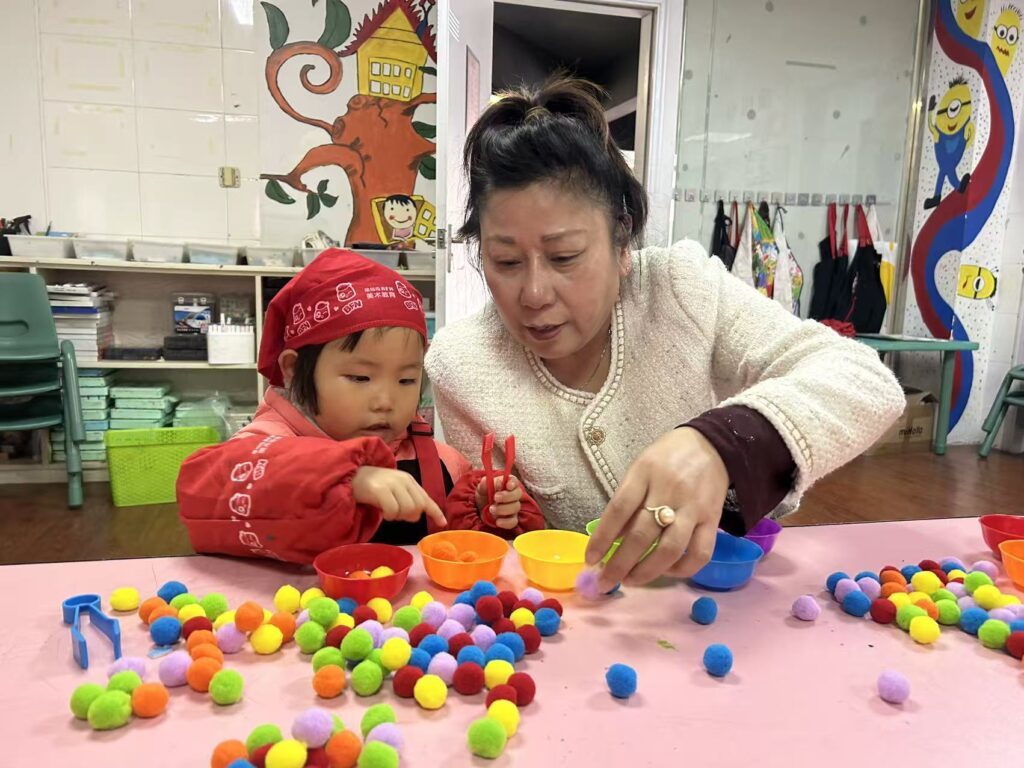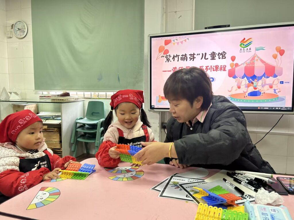 3月26日,活动伊始,机构陈老师带头引导孩子们进行“小毛绒球分类”,在红蓝绿彩球的归类中,其他老师也耐心指导,让孩子们在专注操作中培养逻辑思维与色彩辨识能力。随后进入“超轻粘土花生豆芽画”环节,机构专业周老师示范捏塑技巧,党员志愿者一对一辅助,协助孩子们将粘土揉搓成生动的花生与豆芽造型。现场党徽闪耀、师恩暖心,最终一幅幅充满童趣的作品顺利诞生,充分展现了“党建+专业教育”模式下的高质量育儿成效。