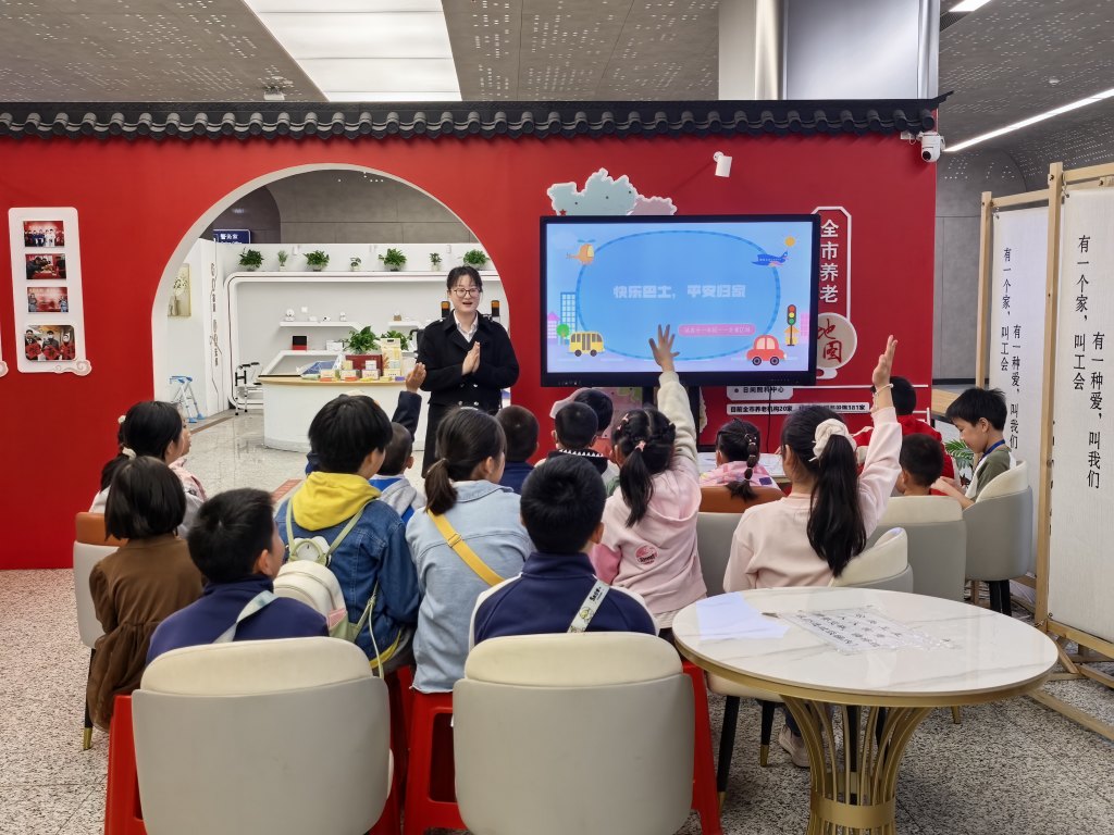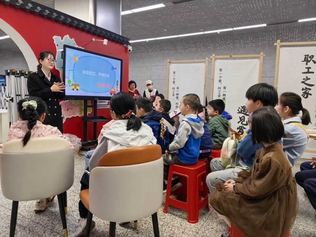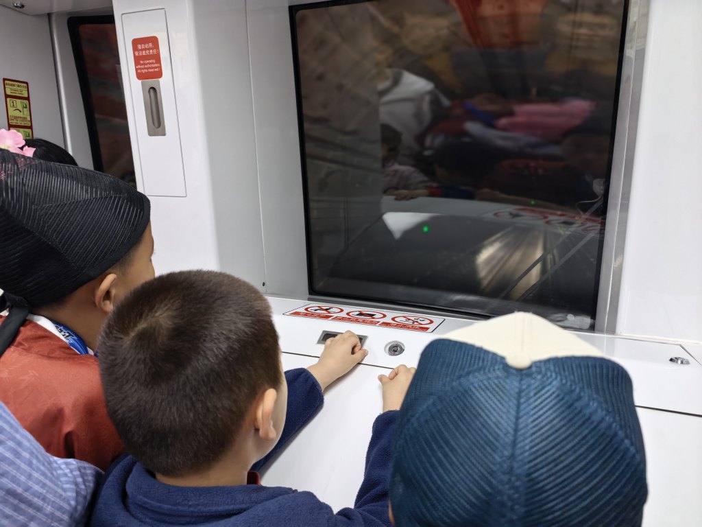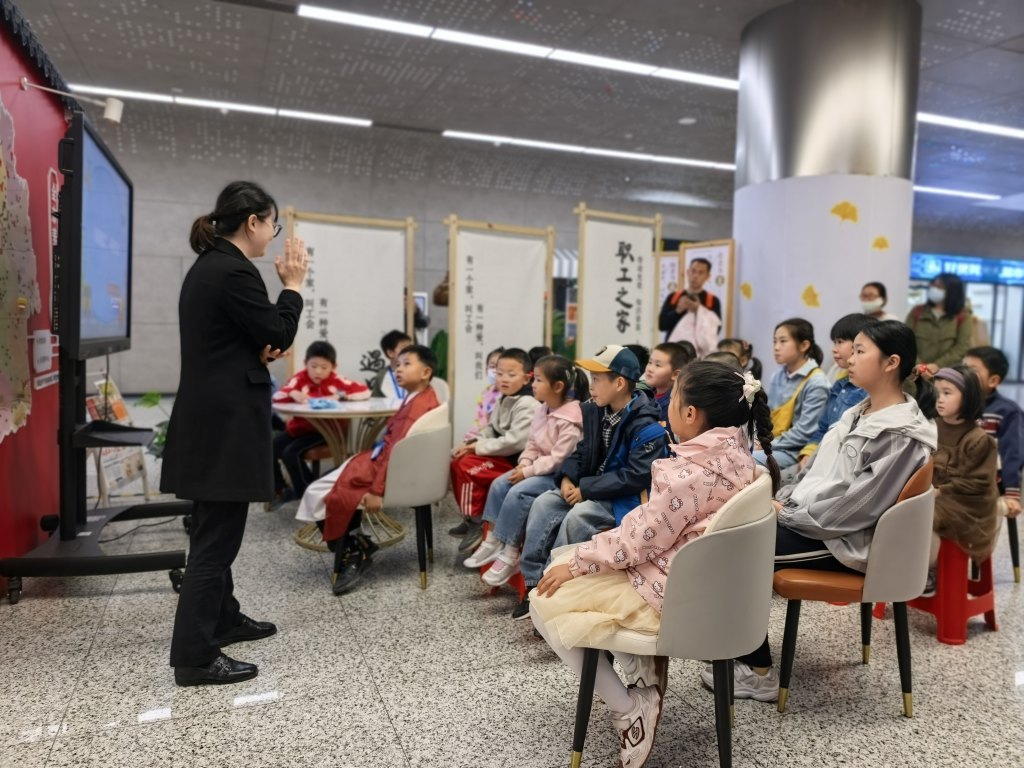 活动当天,社工在江浦站组织亲子家庭签到集合后,带领青少年开启探索之旅。在安全礼仪演练环节,孩子们通过“黄线外候车”“扶梯静音礼让”“车厢静默管理”等实景模拟,直观学习文明出行规范;乘坐地铁途中,技术人员在驾驶舱观察窗前讲解列车运行原理,将抽象机械知识转化为生动体验;玉山广场站的互动问答环节中,孩子们踊跃提问,地铁讲解员以定制贴纸与盲袋奖励激发探索热情;非遗手作环节则鼓励孩子们结合所见所闻自由创作,最终通过作品展示与分享为活动画上圆满句号。