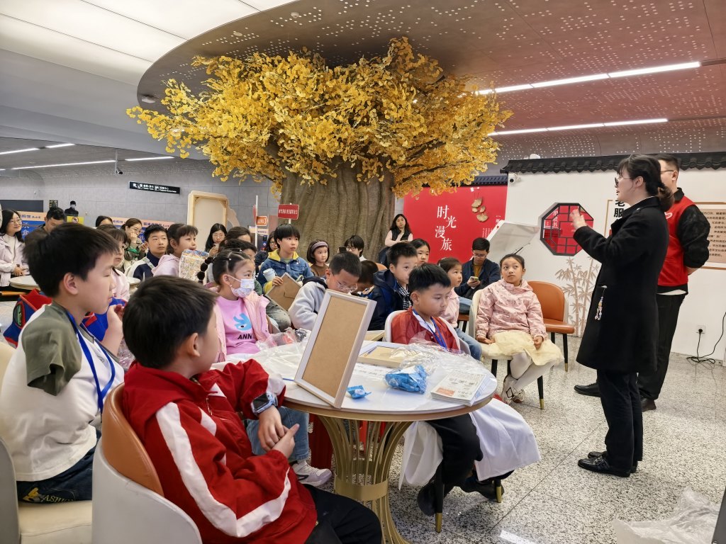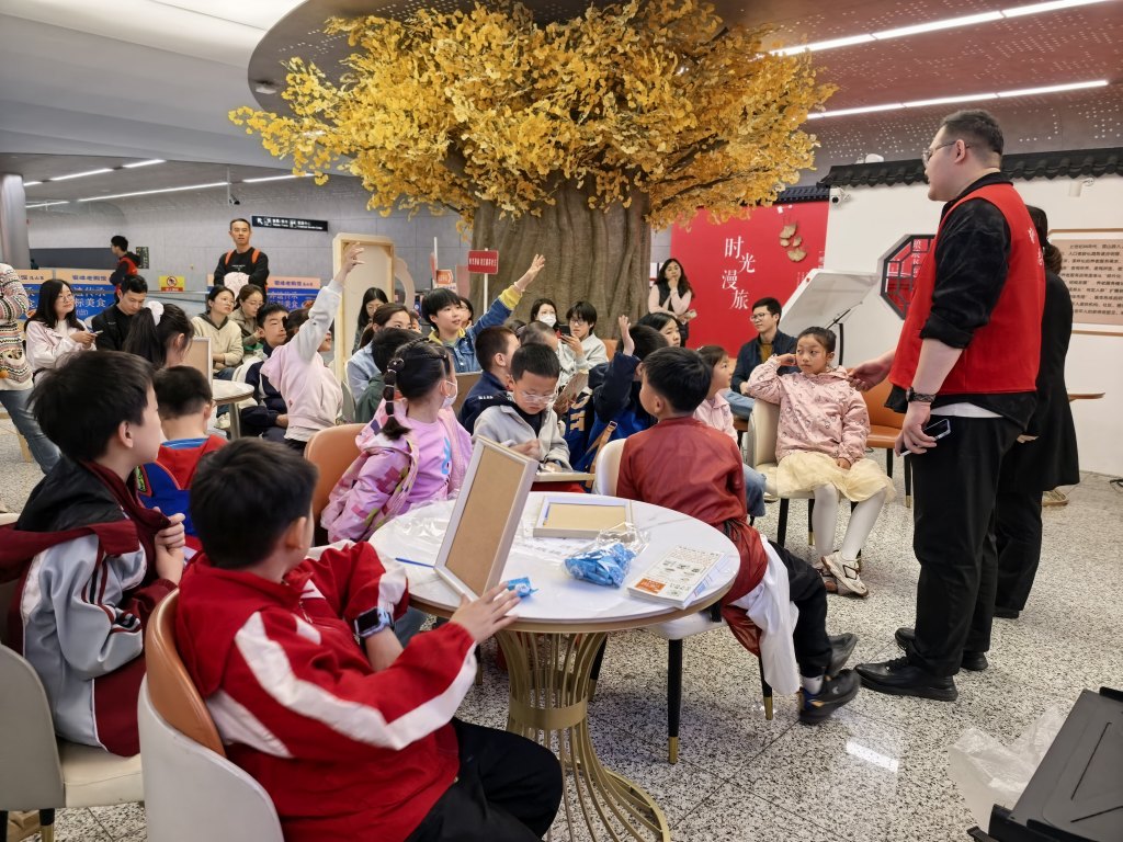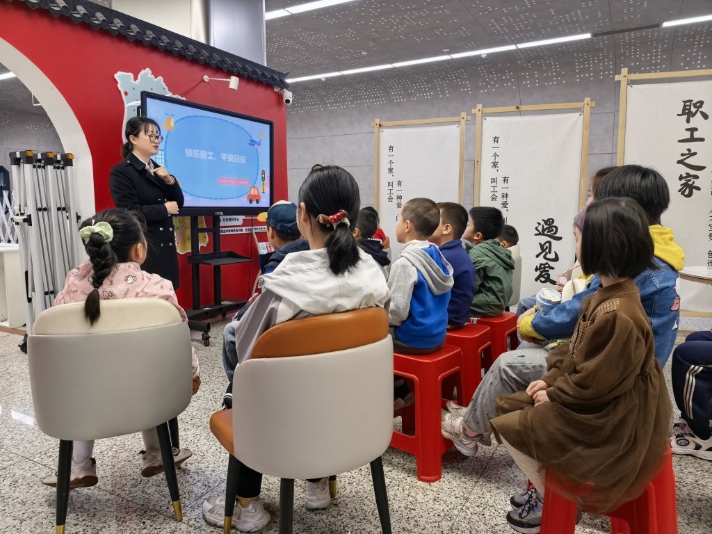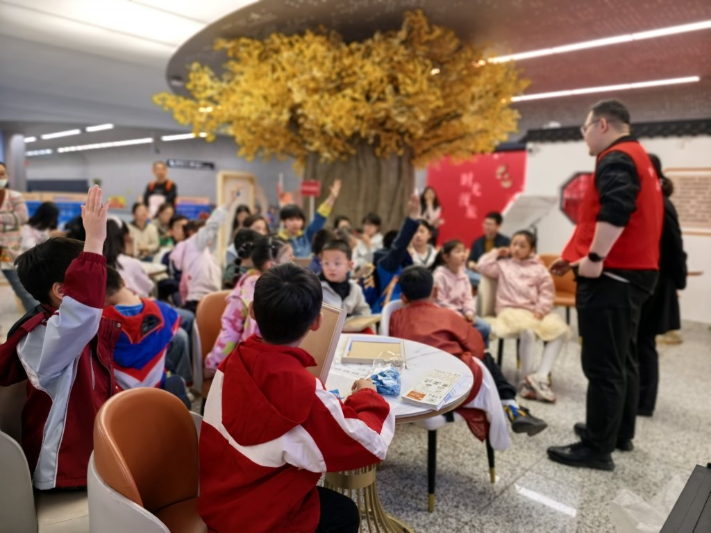 活动当天,社工在江浦站组织亲子家庭签到集合后,带领青少年开启探索之旅。在安全礼仪演练环节,孩子们通过“黄线外候车”“扶梯静音礼让”“车厢静默管理”等实景模拟,直观学习文明出行规范;乘坐地铁途中,技术人员在驾驶舱观察窗前讲解列车运行原理,将抽象机械知识转化为生动体验;玉山广场站的互动问答环节中,孩子们踊跃提问,地铁讲解员以定制贴纸与盲袋奖励激发探索热情;非遗手作环节则鼓励孩子们结合所见所闻自由创作,最终通过作品展示与分享为活动画上圆满句号。