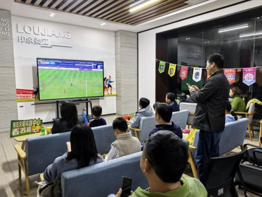 活动现场,超大直播屏实时转播苏超精彩赛事,青年们围坐在一起,随着赛场局势变化时而屏息凝神,时而欢呼雀跃。当苏州队球员突破防线进球时,大厅内响起阵阵欢呼声。随着赛事推进,青年们自发讨论战术、为球队呐喊,陌生感逐渐消解。志愿者全程提供贴心服务,为大家送上饮用水和小零食,营造了温馨的观赛氛围。活动不仅普及了足球运动规则和赛事知识,更传递了拼搏、协作、坚持的体育精神,激发了青年对体育的热爱。