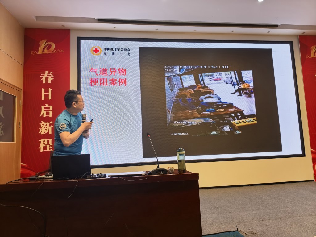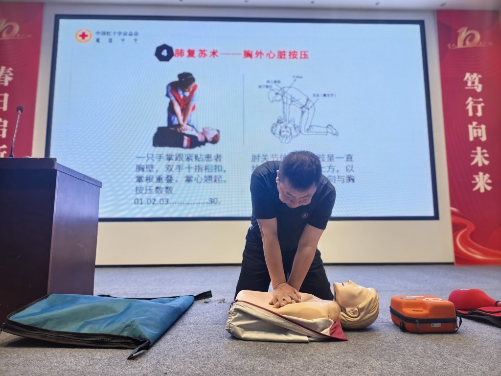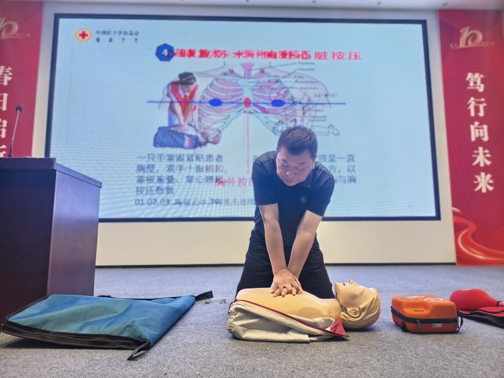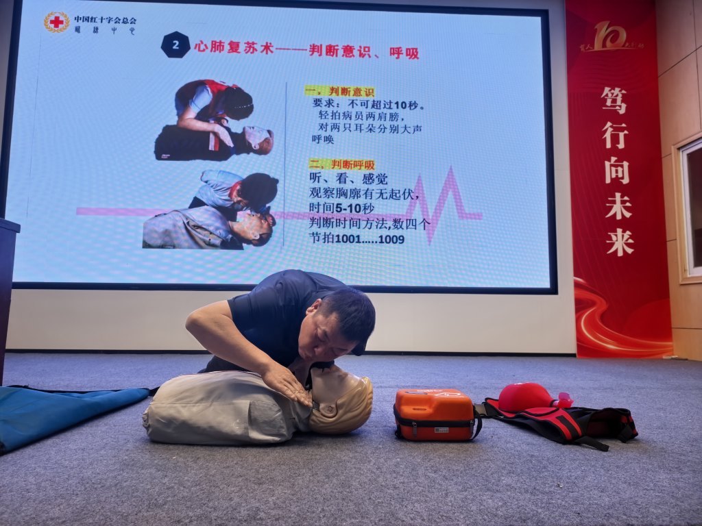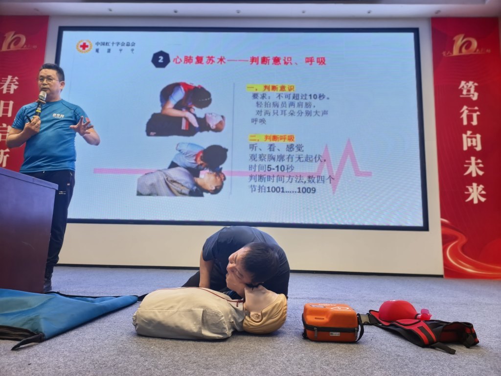 活动现场,蓝天救援队队员以生动案例切入,结合PPT、动画视频和真实救援视频,将复杂急救知识转化为趣味化内容。例如,通过动画演示气道梗阻时的身体反应,用真实案例说明及时施救的重要性。在实操环节,队员们详细讲解心肺复苏标准流程,并邀请孩子上台体验海姆立克急救法,手把手纠正动作偏差。互动问答环节中,孩子们踊跃抢答,答对者获赠精美伴手礼,现场气氛热烈。