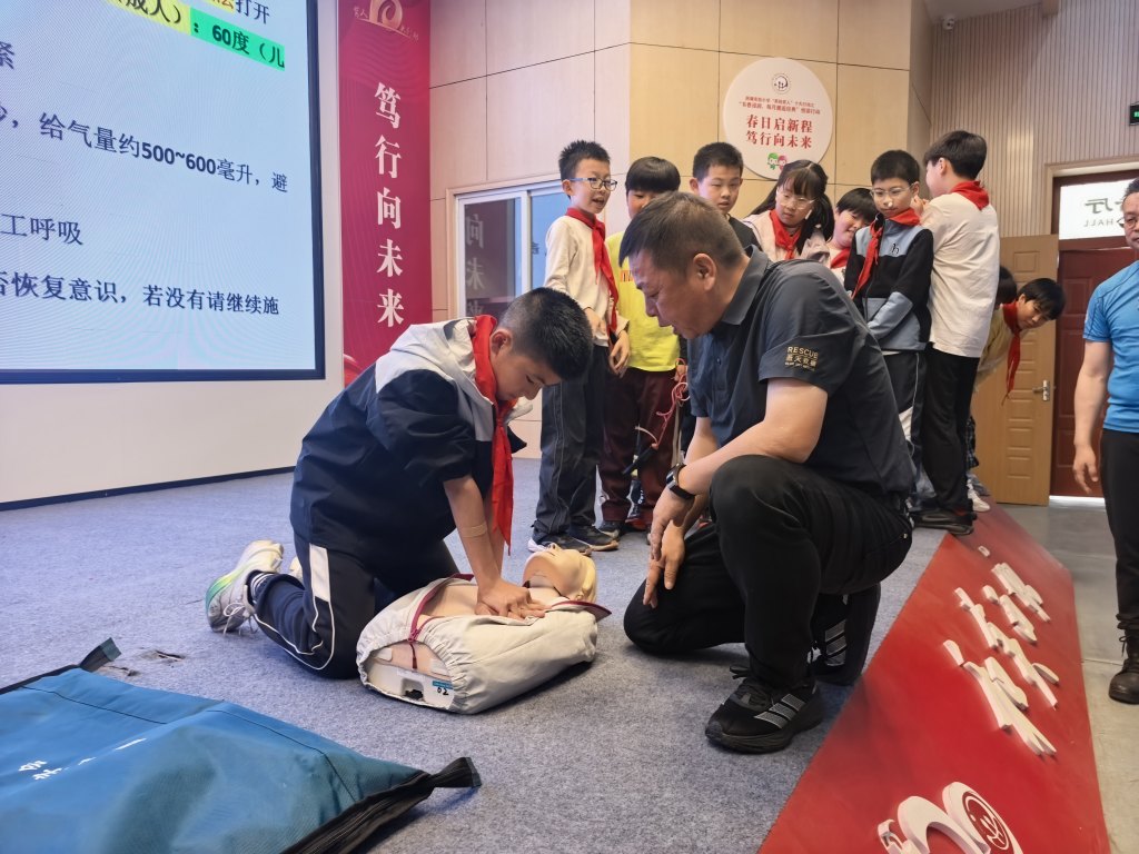 2026年4月15日,大渔社区联合蓝天救援队走进昆山高新区西塘实验小学,为三(四)、五(一)、五(八)班的孩子们带来了一场沉浸式安全教育活动。活动通过理论讲解、实操演示和互动演练,系统普及了气道梗阻、心肺复苏(CPR)、AED使用等急救知识,旨在提升儿童安全意识与自救能力,同时强化社区、学校、家庭三方联动机制。