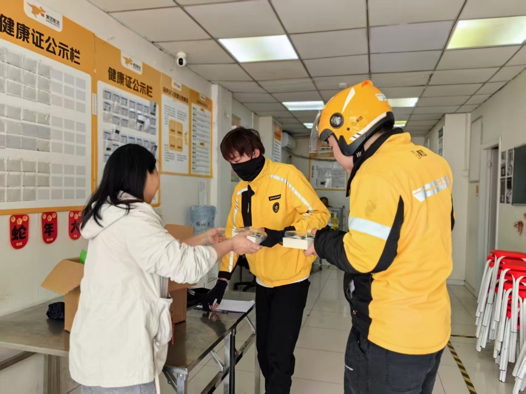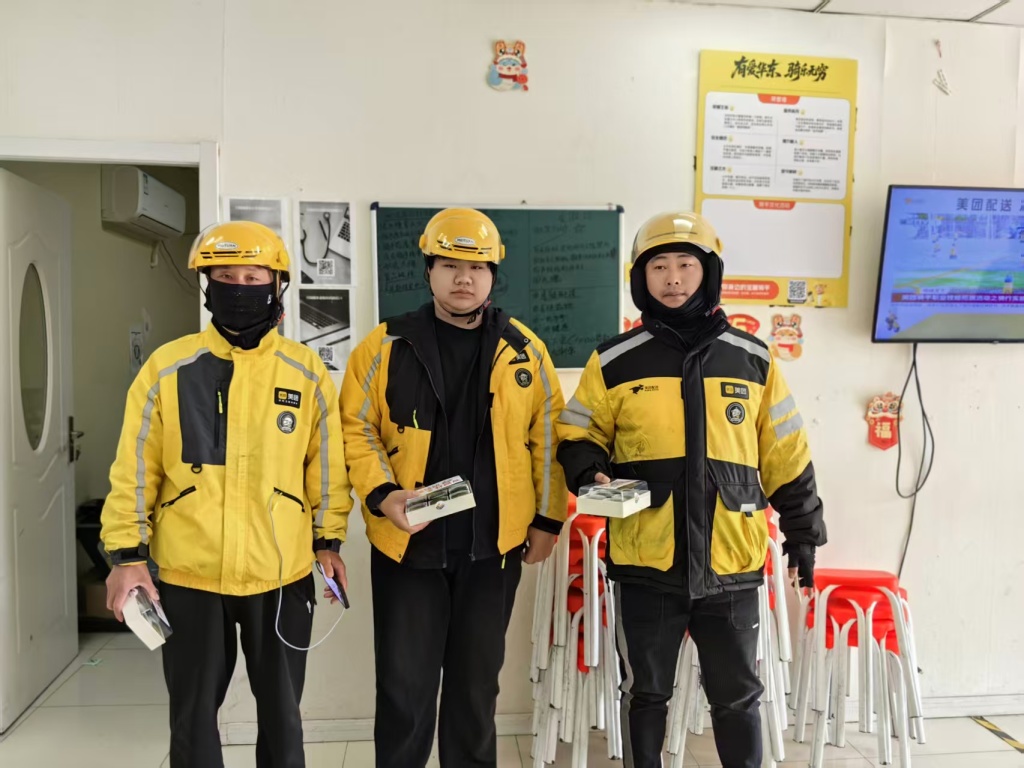 活动现场,社工与志愿者们将热气腾腾的青团逐一递到骑手手中,并送上“辛苦了”“注意安全”等暖心问候。在轻松的氛围中,社工与骑手们面对面交流,耐心倾听他们在配送过程中遇到的困难与诉求,详细询问工作强度、休息保障等情况,同时普及春季出行安全、饮食健康等知识,提醒大家合理安排作息、做好自身防护。骑手们纷纷停下忙碌的脚步,一边品尝青团一边分享工作日常,现场欢声笑语不断,暖意融融。活动最后,社工与站点负责人及骑手代表合影留念,定格下这份春日里的温暖瞬间。