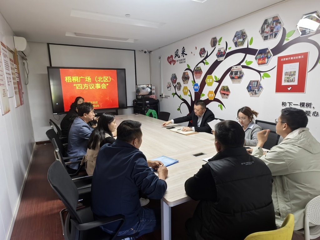 五一劳动节临近,为扎实做好节前安全防范工作,筑牢社区安全防线,营造平安、整洁、和谐的节日环境,新北社区于2026年4月24日在一楼活动室组织开展了“四方议事·焕新新北”专题议事会议。此次活动吸引了社区工作人员、居民代表、物业代表等10人参与,共同聚焦社区安全治理与环境维护工作。