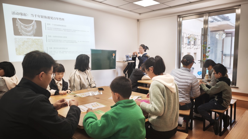 活动伊始,工作人员通过展示精美的成品冰箱贴,向参与者详细介绍了苗银与竹编的历史渊源和工艺特点。‘苗银不仅是饰品,更是穿在身上的史诗;竹编则是流淌在指尖的东方美学。’工作人员一边讲解,一边演示竹编从选竹、破篾到编织的复杂工序。当了解到细如发丝的竹篾需要经过十几道工序才能用于编织时,现场参与者纷纷发出惊叹,对接下来的动手环节充满期待。