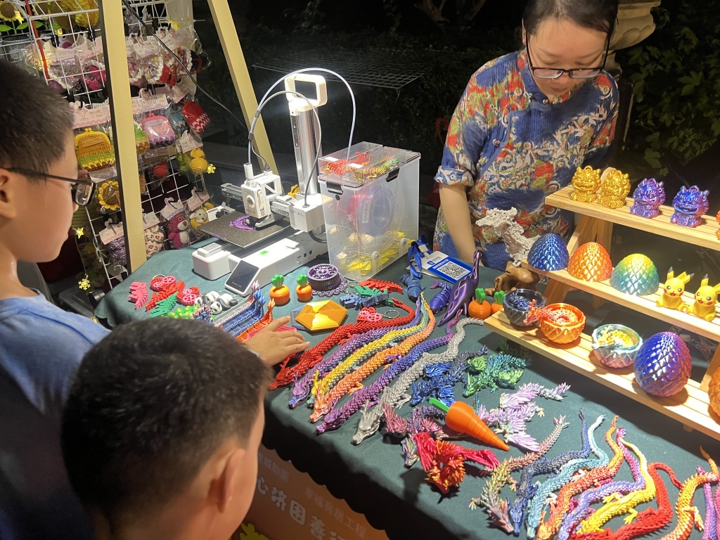 活动现场设置了十个丰富多样的摊位,包括3D手工打印作品、手工编织手作、口腔咨询、免费动物义诊、漆扇古风饰品以及蜡瓶糖等特色小食,吸引了大量居民驻足选购。科技与艺术的完美结合、匠心独运的手工艺品、专业的健康咨询,以及充满古风韵味的饰品,都让居民们流连忘返。
