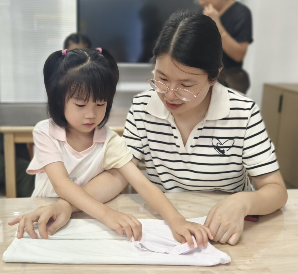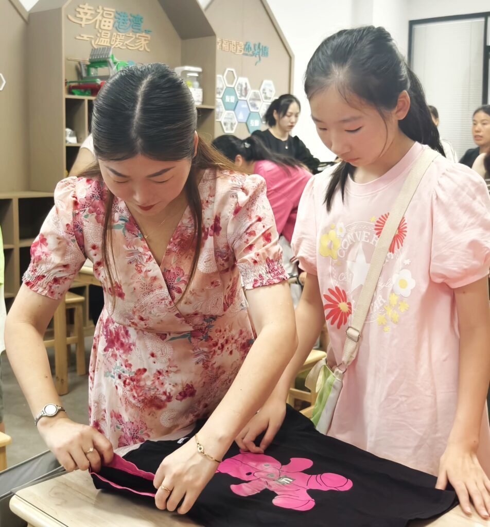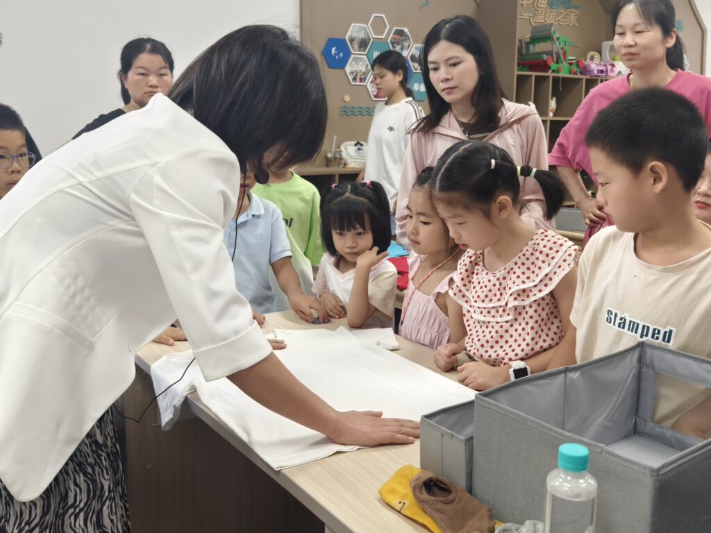 最令人期待的实践操作环节中,收纳师聚焦衣物整理这一高频需求,手把手教授衣服、袜子的高效折叠方法。从T恤的“方块折叠法”到袜子的“包裹式收纳”每一个步骤都清晰演示、细致讲解。大家纷纷拿起手中的衣物跟着练习,在反复尝试中掌握了让衣物整齐紧凑、取用方便的技巧,解决了长期以来衣物堆放杂乱、褶皱过多的困扰。